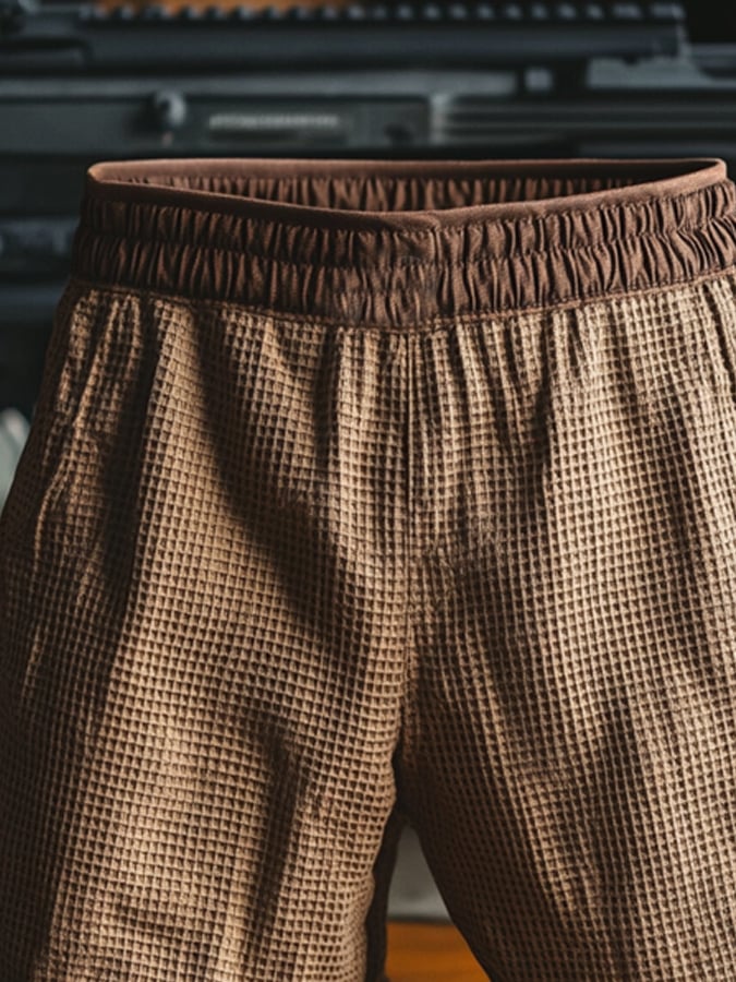 Men's Retro Texture Waffle Fabric Elastic Waist Casual Shorts