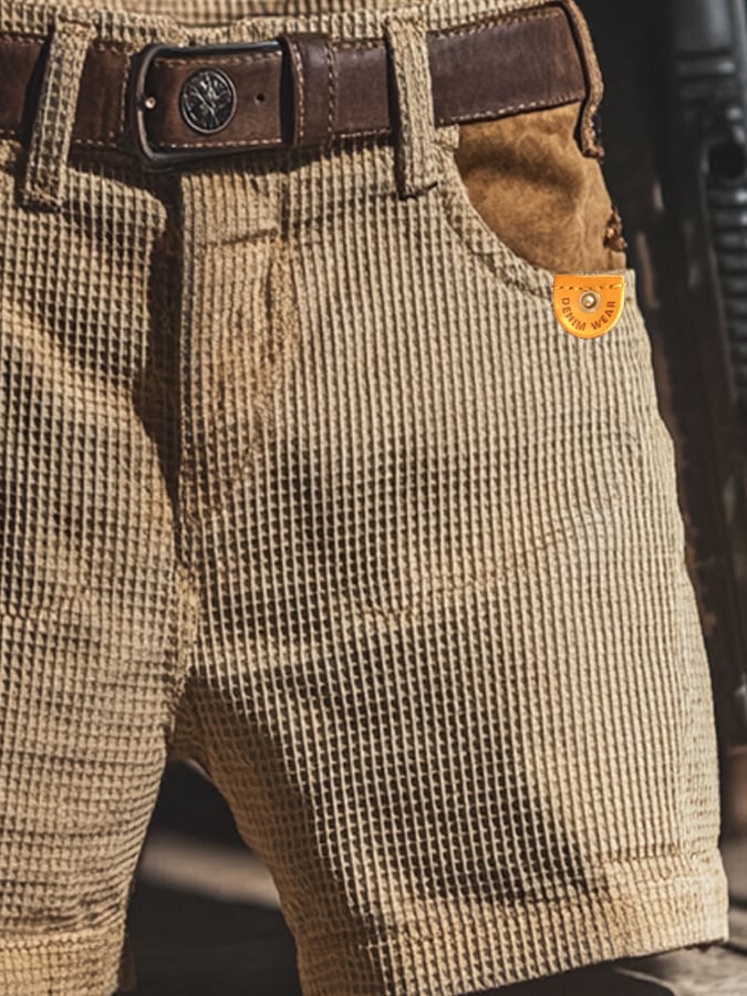 Men's Retro Textured Waffle Fabric Casual Shorts