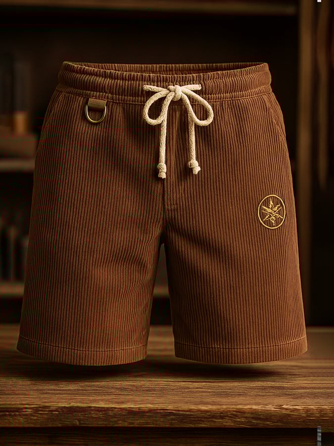 Men's Retro Fashion Classic Corduroy Elastic Waist Lace-up Casual Shorts