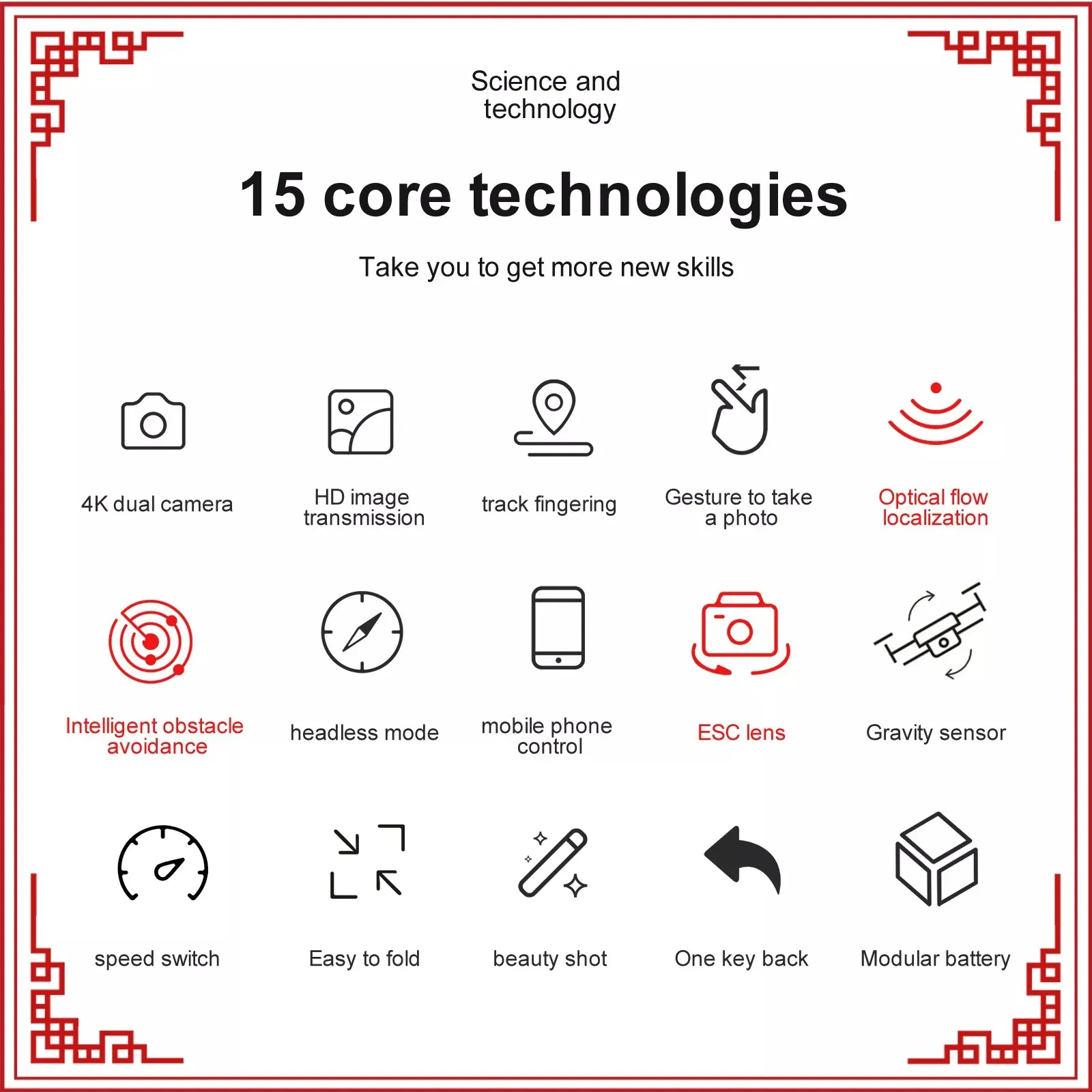 - SENSING FUNCTION: binocular vision sensors are equipped at the front and rear and bottom of the fuselage, and the detection distance of the front and rear environment can reach 30 meters, which can effectively improve the safety and overall flight experience