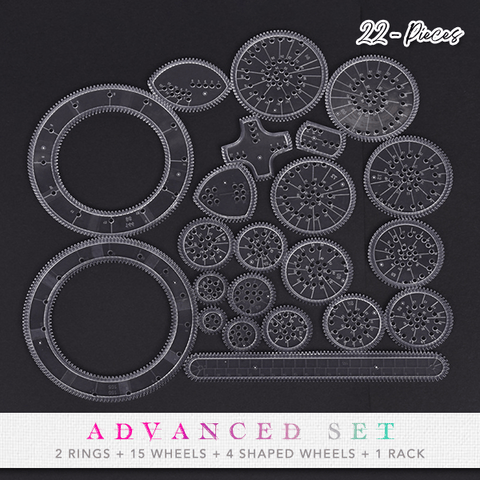 - All-Inclusive Spiral Art Package: The advanced Spiral Art set features 15 wheels and 4 shaped wheels in all-new unique shapes, as well as 2 rings and 1 rack to create a never-before-seen assortment of spiral art designs. The easiest way to make countless amazing spiral art !