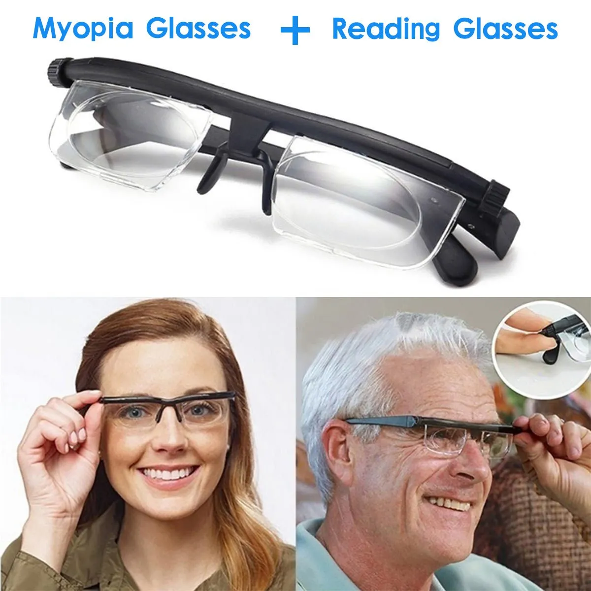 Focus Adjustable Eyeglasses -3 to +6 Diopters Myopia Glasses Reading Glasses