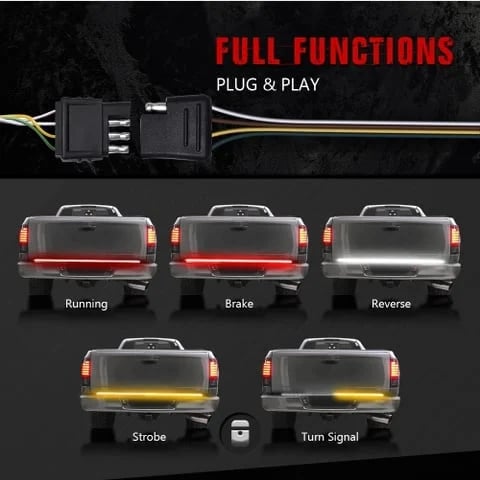■ FULL FUNCTIONS - Features full functions of brake, turn signal, running, reverse and strobe light. The Triple-row tailgate light emits low Red for running, Bright Red for braking, Amber for left/right turning signals, White for reversing, and Flash Amber for emergency strobe light. Let everyone behind you clearly knows what's your next step!