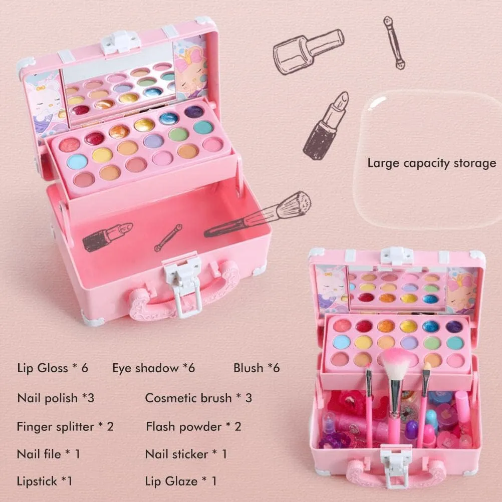 A non-toxic kit provides a fantastic opportunity for your little fashionista to explore the world of makeup without using any real products. Easily removed with water, non-toxic and harmless. Meet the standards of international children’s toys(CPSIA, CPC, ASTM certificates)
