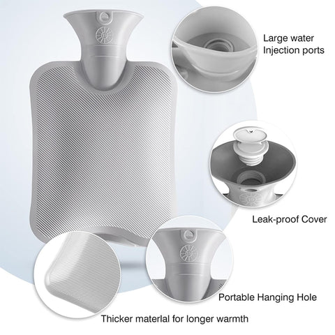 DURABLE AND SAFE - Hot water bottle is made of rubber for maximum safety and heat transfer perfectly, keeping the water warmer for longer. To provide more safety, the temperature of the hot water should not exceed 80 degrees Celsius.